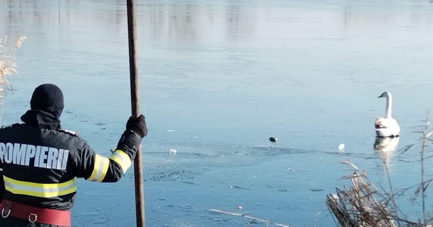 Echipele de intervenție din cadrul Detașamentului de Pompieri Târgu Frumos acționează folosind o ambarcațiune și un vehicul specializat pentru a ajuta lebedele imobilizate pe un lac înghețat din localitatea Buda. Această operațiune de salvare este coordonată de Inspectoratul pentru Situații de Urgență Iași.